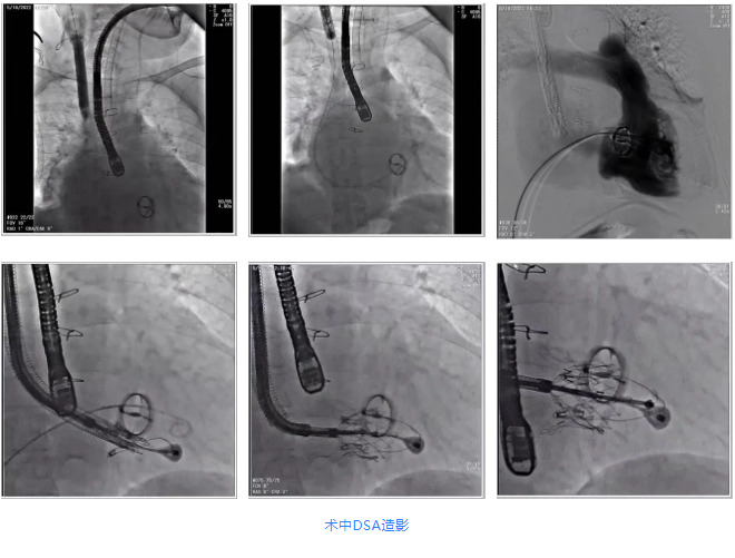 根據(jù)術(shù)前評估結(jié)果,郭應(yīng)強教授團(tuán)隊為患者量身定制了手術(shù)策略,決定使用LuX-Valve Plus經(jīng)血管三尖瓣置換系統(tǒng)開展手術(shù)治療。手術(shù)在全麻下進(jìn)行,采用經(jīng)右側(cè)頸靜脈入路,在經(jīng)食道超聲和DSA的指引下調(diào)整輸送器角度以達(dá)到正確位置,勾住前瓣后逐步釋放盤片,盤片打開后順利扎針,最終完成瓣膜植入,輸送器撤出。術(shù)后超聲提示人工三尖瓣同軸性良好,瓣架固定牢靠,無反流和瓣周漏,術(shù)后三尖瓣平均跨瓣壓差為1 mmHg。